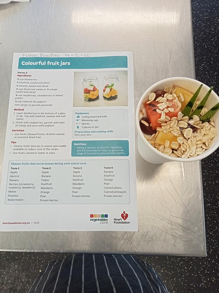 At the senior levels, Level 1 Hospitality students developed their knife skills and hot finger food presentation, showing Whanaungatanga through peer support and shared learning. Level 2 students tackled a stacking tower challenge before diving into fruits and vegetables, helping one another refine their skills and techniques. Our Level 3 students collaborated to create impressive pickles, preserves, and chutneys, sharing knowledge and celebrating each other’s successes.