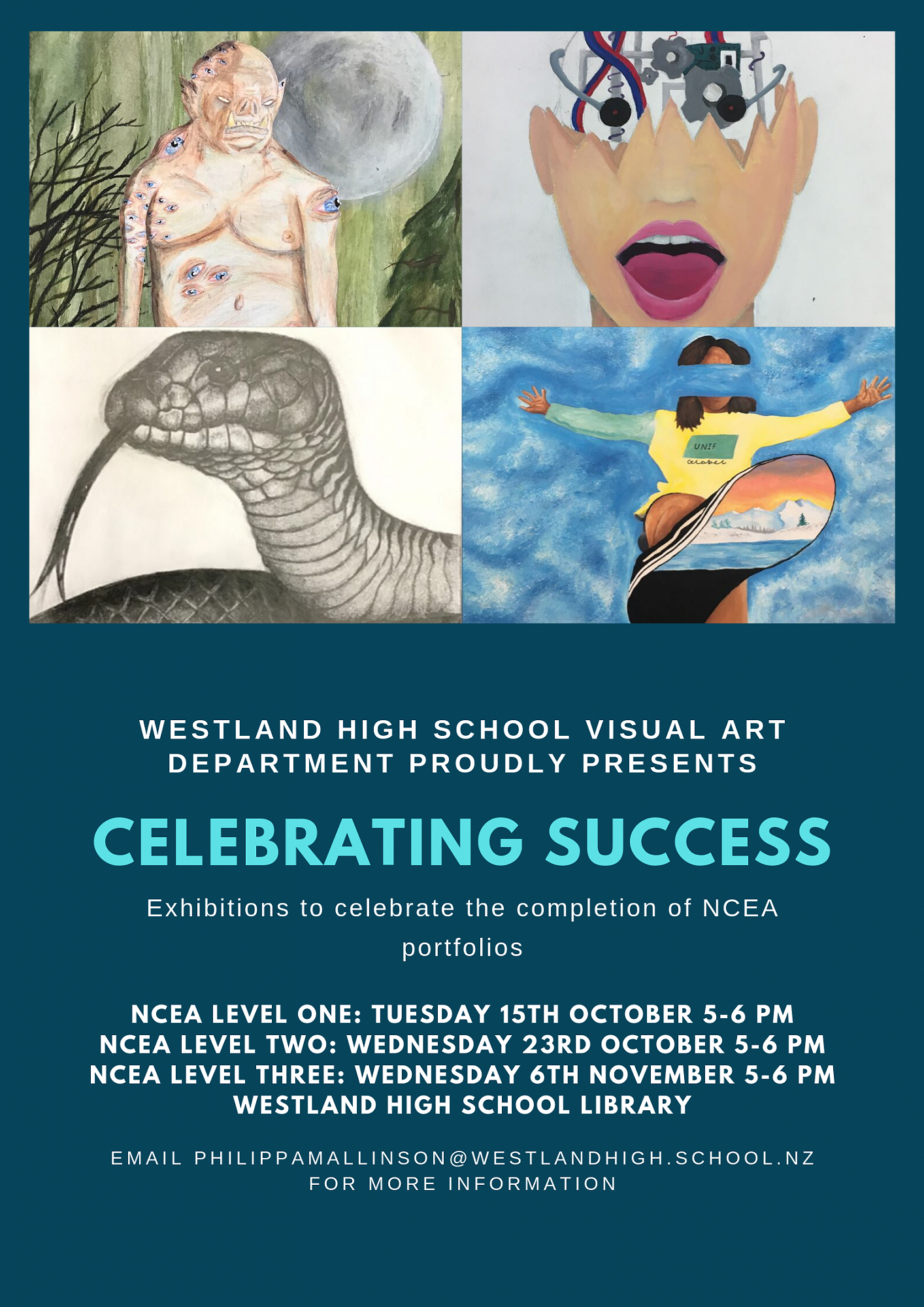 Come along and support the Senior Art students by attending their separate exhibition dates.